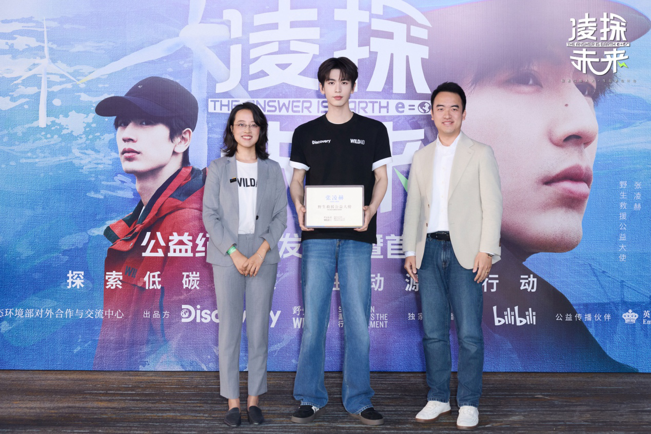《凌探未来》是国内首部由明星公益大使参与的关于低碳转型的公益纪录片。在发布会现场,余冲授予张凌赫野生救援公益大使证书,“作为影响力与学识素养兼备的青年榜样,我们期待张凌赫以自身的跨界思考与行动力,激励更多年轻群体关注低碳转型,将环保理念融入日常生活并付诸行动。”余冲表达了对张凌赫作为最新一位野生救援公益大使的期许。