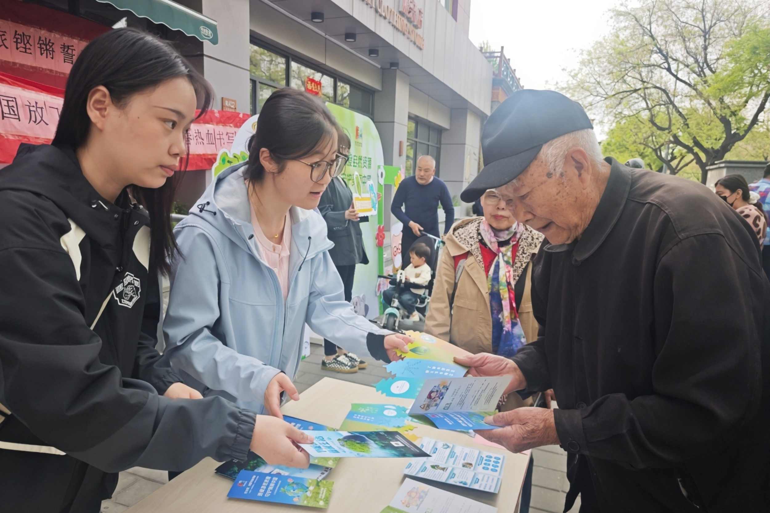 现场最“出片”的,是一面印着“在东四,和蓝天做邻居”的蓝天打卡墙。居民们手持“我是环保守站人”“我爱东四的蓝天”等手举牌,争相合影,然后发到朋友圈、家庭群——把环保理念,变成一次次“指尖上的传递”。
