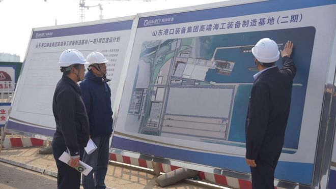 记者近日走进“山东港口装备集团高端海工装备制造基地项目”建设现场,工人们正推进主体结构施工,现场一派繁忙景象。目前,项目企业手持订单已排至2028年,新基地建设迫在眉睫。