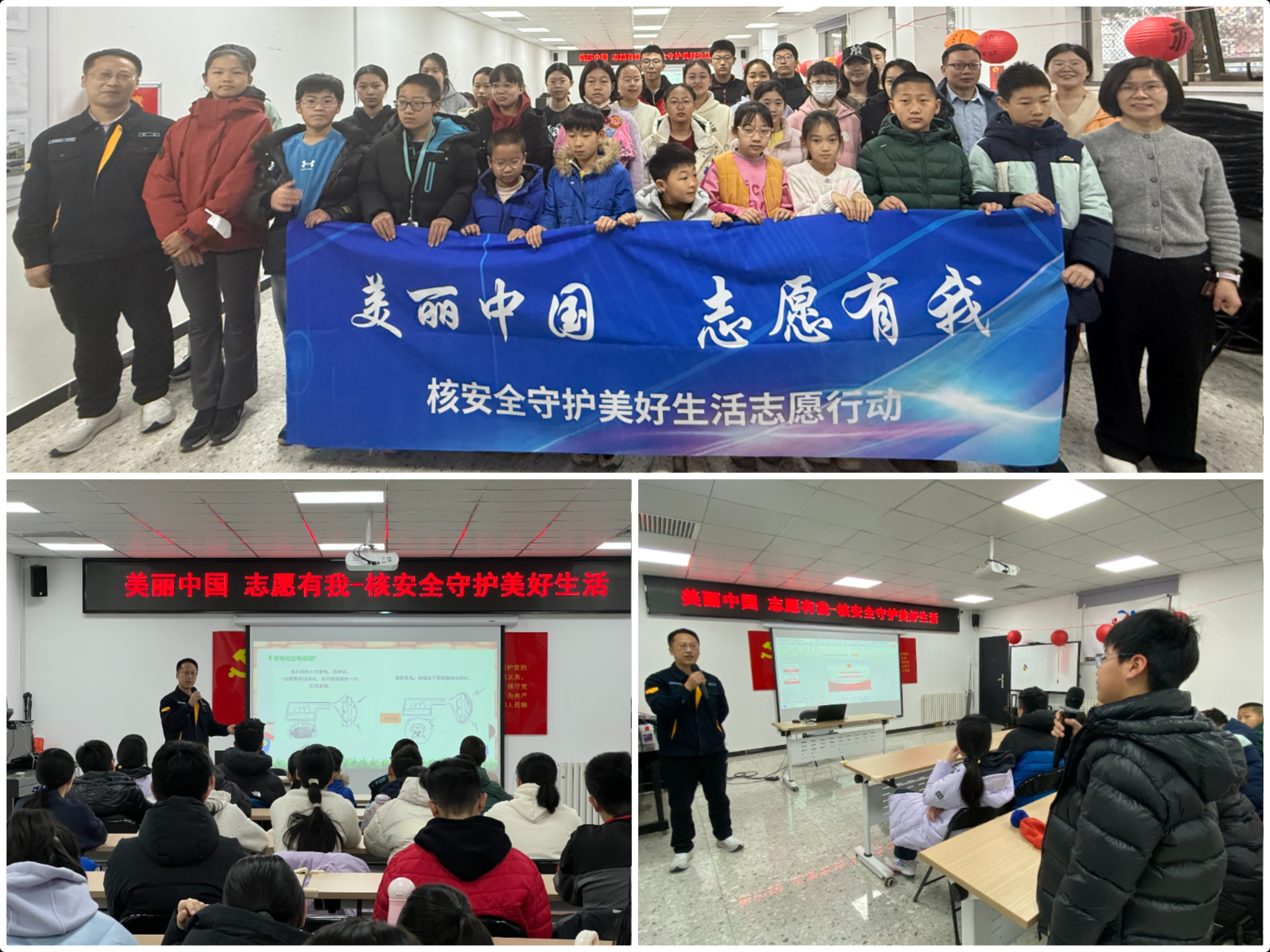 在蓟门里社区,以“美丽中国 志愿有我—核安全守护美好生活”为主题的科普活动,吸引了社区中小学生热情参加。青年志愿者以“一尺之棰,日取其半,万世不竭”这一中国古代哲学思想为引,将复杂的核科学知识转化为生动易懂的语言,深入浅出地讲解了核裂变、核电站发电原理和安全保障以及“双碳”目标背景下发展核电的重要意义,并通过问答互动播撒科学种子、提高科学认知。在红联村社区,青年志愿者则将雷锋精神的温暖送到了居民家门口,他们与社区工作人员一起深入小区内部,开展垃圾分类宣传、清理“小广告”、维护社区环境,并对重点区域开展安全隐患排查,与居民共建健康、文明、安全、和谐的幸福家园。