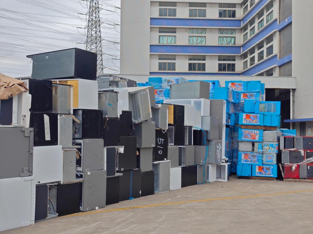 家电拆解企业堆放的废旧冰箱。新华社记者 钟焯 摄