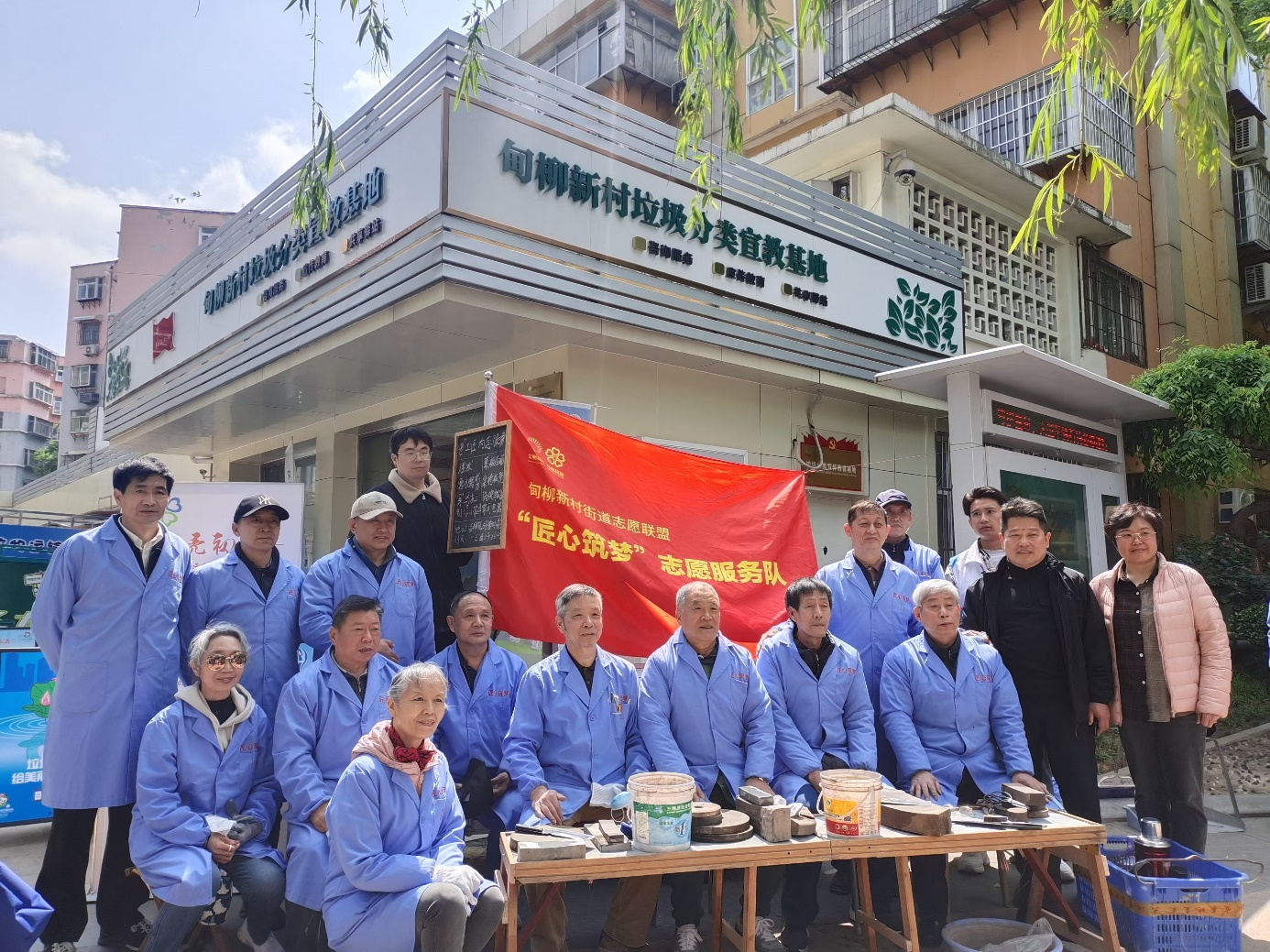 在甸柳新村街道吉祥苑社区,有一支平均年龄65岁以上的“匠心筑梦”志愿服务队伍。站长宁波退休前是木匠,家里堆满了舍不得扔的旧木料、旧家电。垃圾分类刚开始时,他也犯嘀咕:“这些木头还能用,扔了多可惜。”