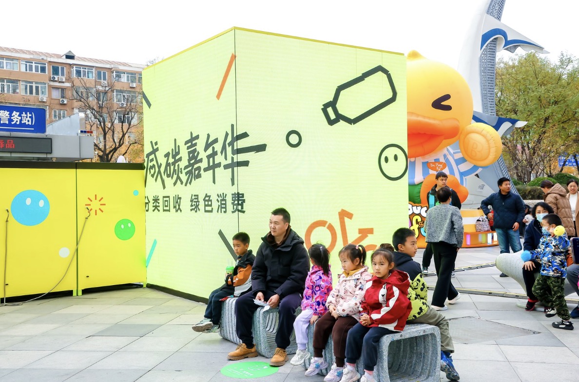 由爱回收主办、北京通州万达广场协办的“减碳嘉年华”活动近日在北京通州万达广场正式启动。本次活动以“分类回收·绿色消费”为主题,联合京东超市、京东宠物、京东美妆、利乐中国等可持续合作伙伴,以及京东青绿、美团青山、腾讯公益等公益机构,共同打造了一场集趣味互动、绿色消费与低碳理念传播于一体的创新环保盛典,旨在通过“政府引导+企业落实+公众参与”的模式,推动北京绿色低碳发展迈上新台阶。