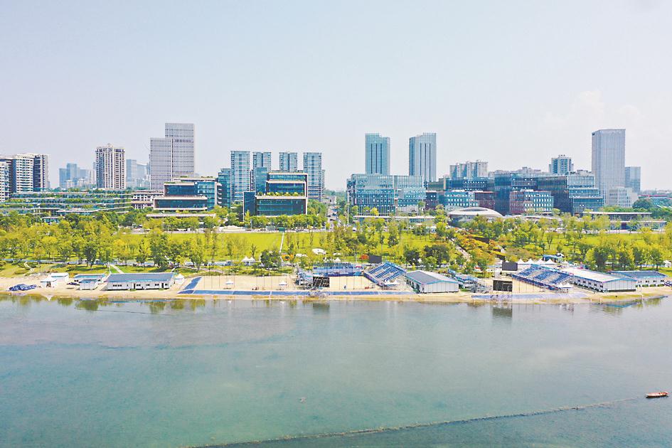 9个室外场地的建设则更显“生态智慧”。东部新区三岔湖水上项目场地,巧妙利用岛屿围合的天然水域作为赛道,地面临时建筑采用可调节地台基础技术,赛后拆除后场地可快速恢复生态原貌,让可循环材料的高效利用成为低碳基建的示范样本。兴隆湖湖滨赛场依托4500余亩生态水域,将湖滨岸线顺势改造成观赛区,观众在观看龙舟赛事时,抬头便能望见龙泉山的青翠轮廓,实现“赛事与自然共生”。