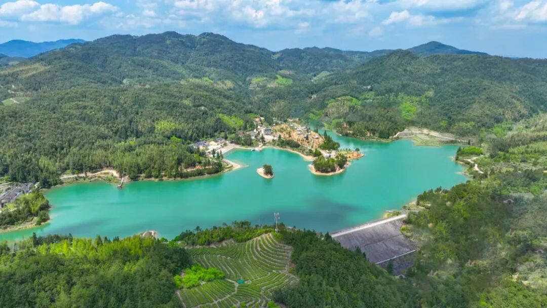 政和县构建以佛子山、洞宫山、石圳湾为引领的全域旅游发展格局,获评“健康中国·深呼吸康养旅游强县”。图为日前拍摄的镇前镇的何山水库。郭斯杰摄