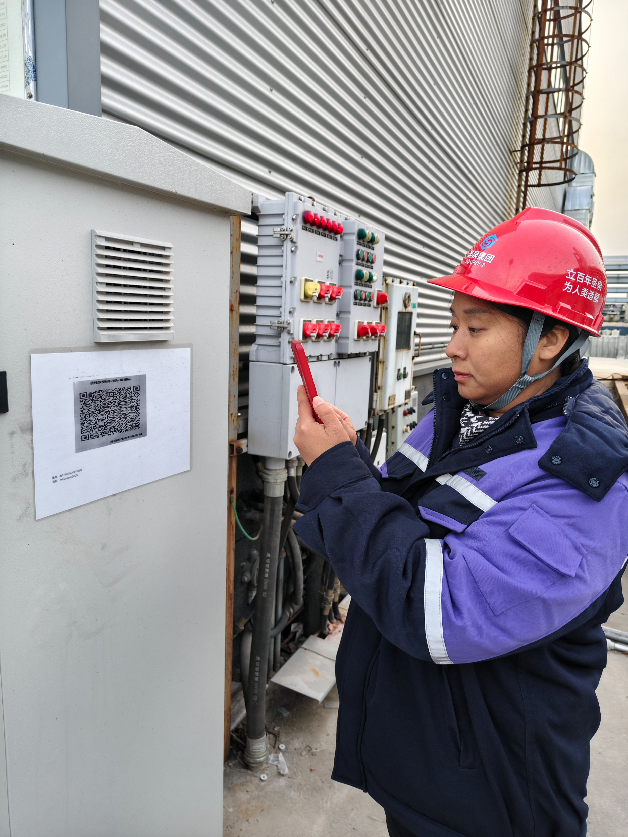 图为企业环保管理人员扫码登录济南市活性炭“码上换”小程序,开展活性炭更换工作。