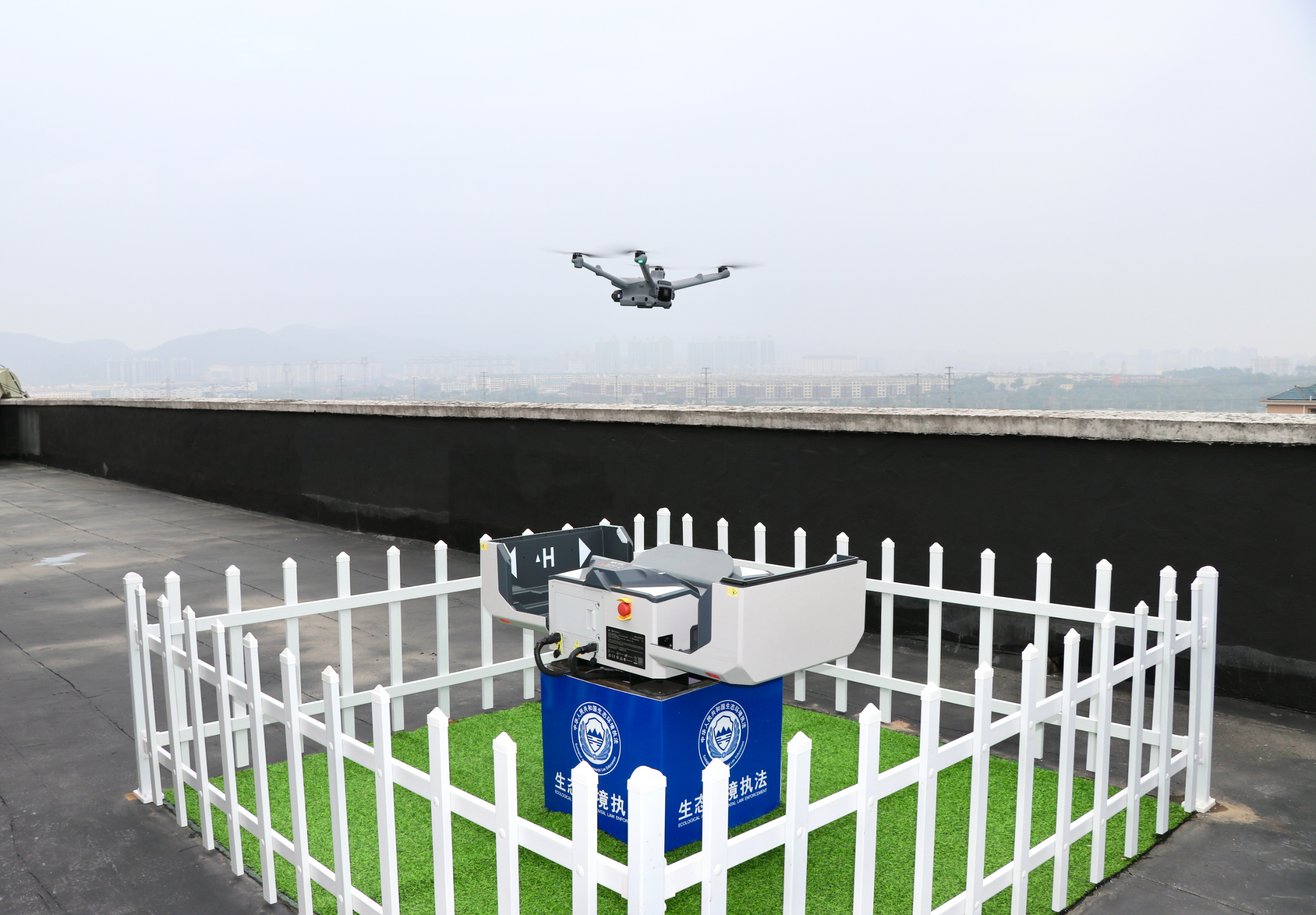图为新余市渝水区生态环境无人机场,无人机正起飞执行巡检任务。胡玥摄